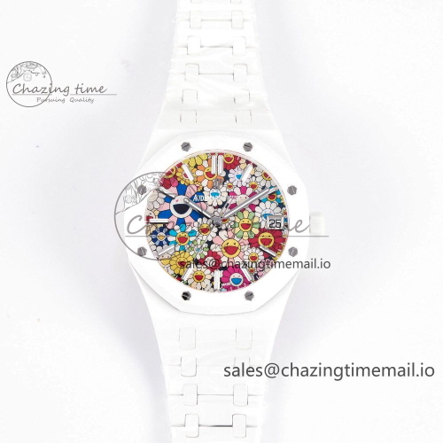 Royal Oak 15500 White Ceramic APSF 1:1 Best Edition Celebration Dial on White Ceramic Bracelet A4401