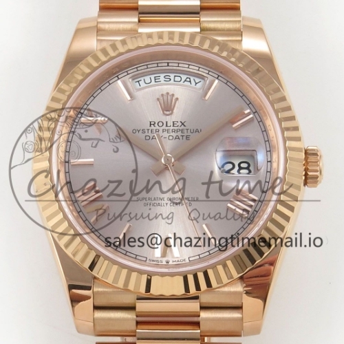 Day Date 40 RG 228235 RCF 1:1 Best Edition Silver Roman Dial on President Bracelet VR3255 (210g)