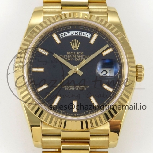 Day Date 40 YG 228238 RCF 1:1 Best Edition Black Stick Dial on President Bracelet VR3255 (211g)